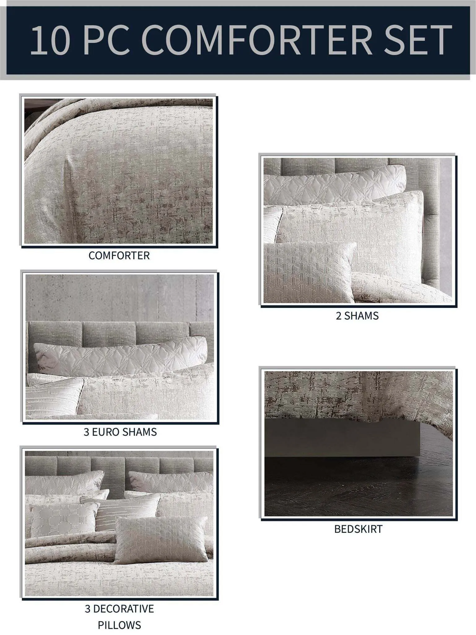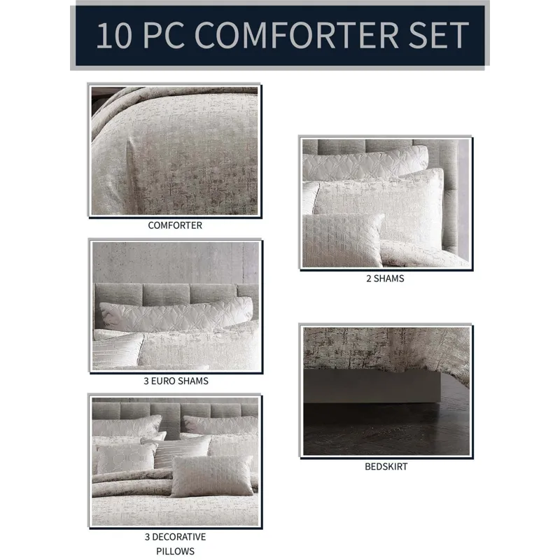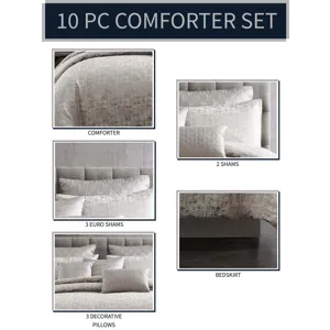 - 1 King Comforter (110-in W X 96-in L), 2 King Shams (20-in W X 36- in L), 1 Square Pillow (18-in W X 18-in L), 1 Rectangle Pillow (13-in W X 22-in L)