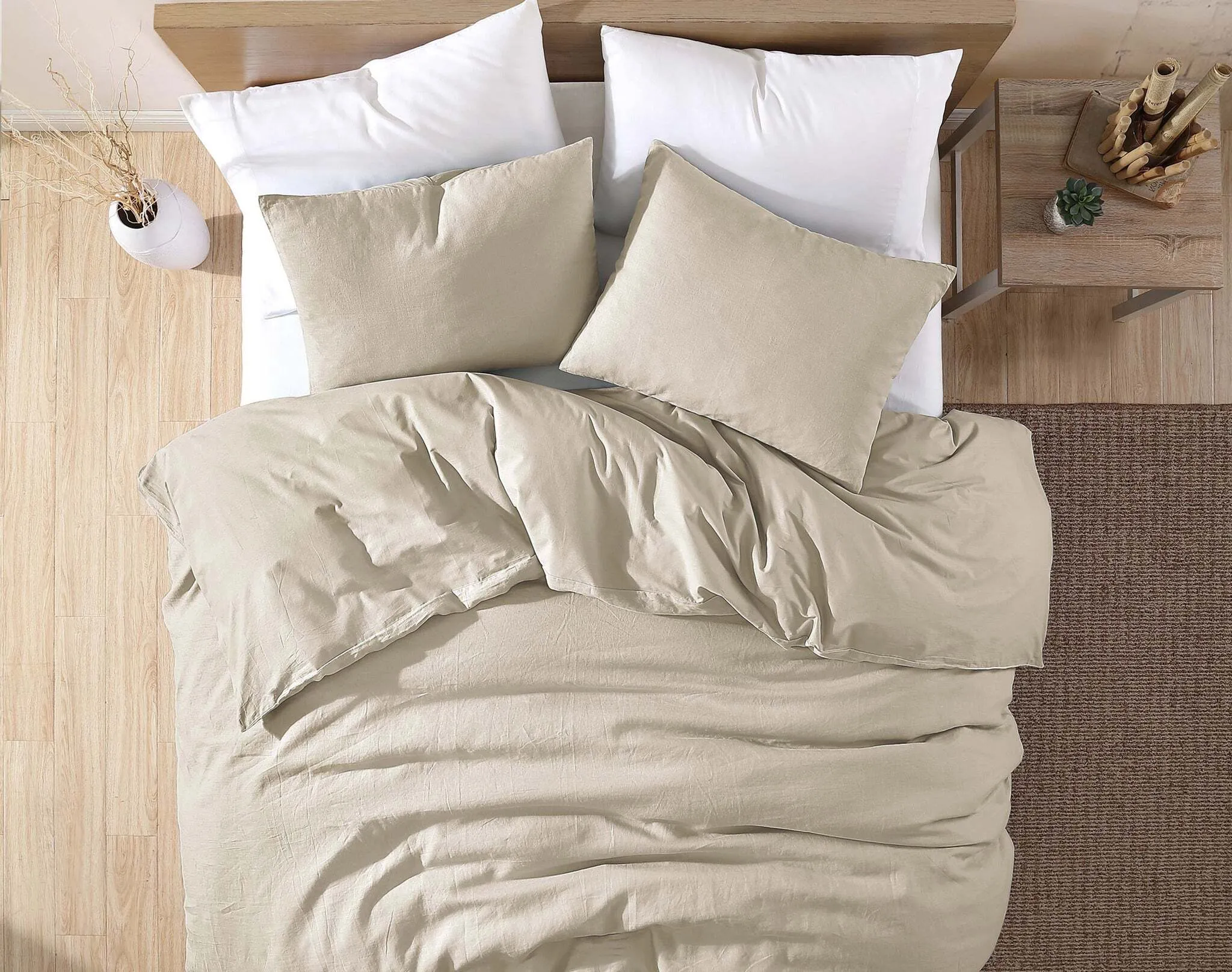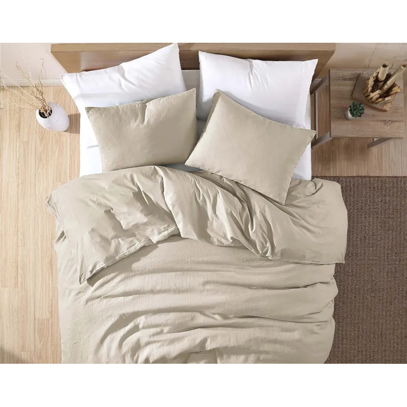 Content:100% Linen Face/100% Cotton Back; Filler: 100% polyester face/100% polyester filling; Care: Use front load commercial washer and dryer, machine wash cold delicate, wash with like colors, Only non-chlorine bleach when needed, tumble dry low, remove promptly.