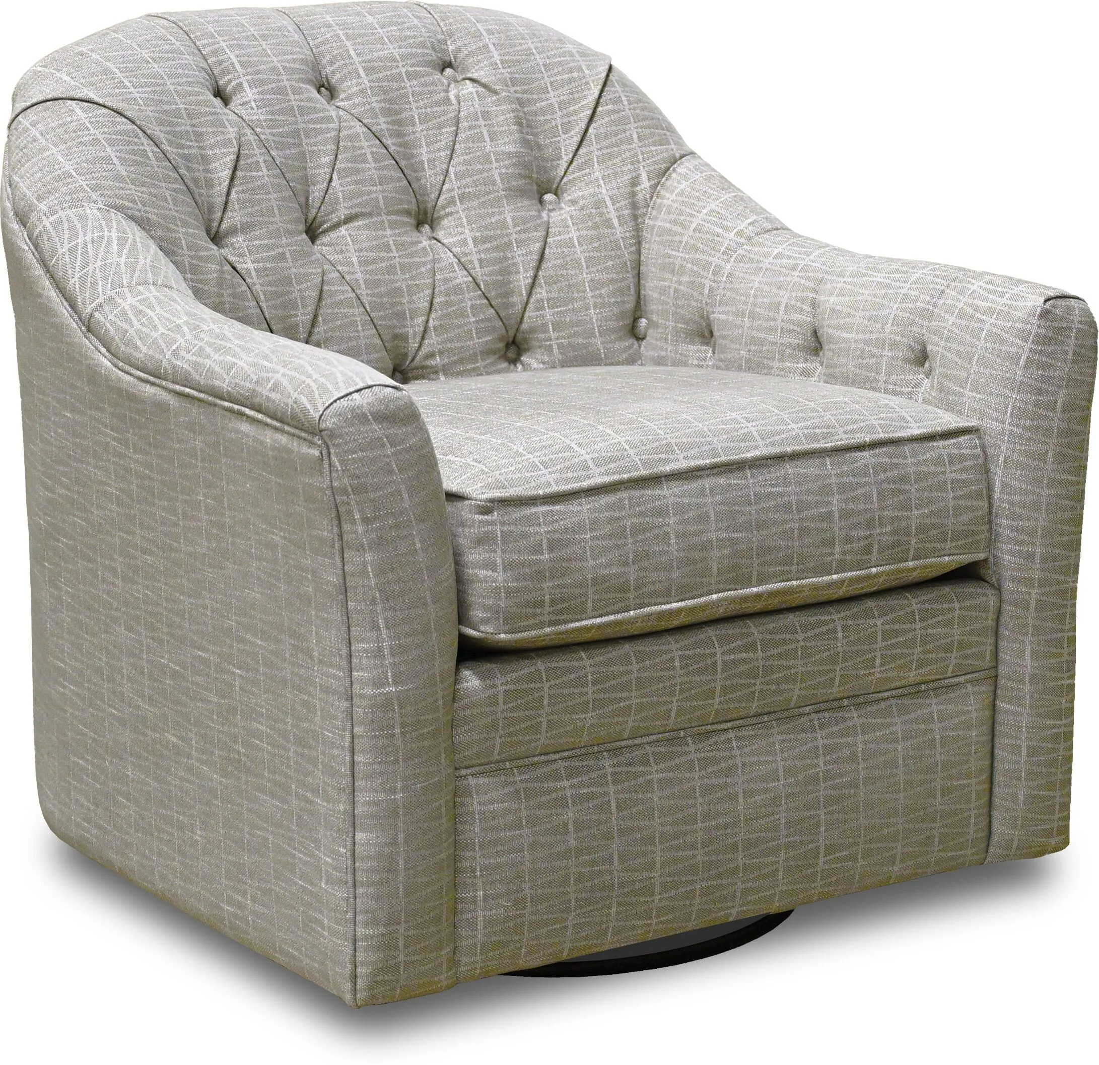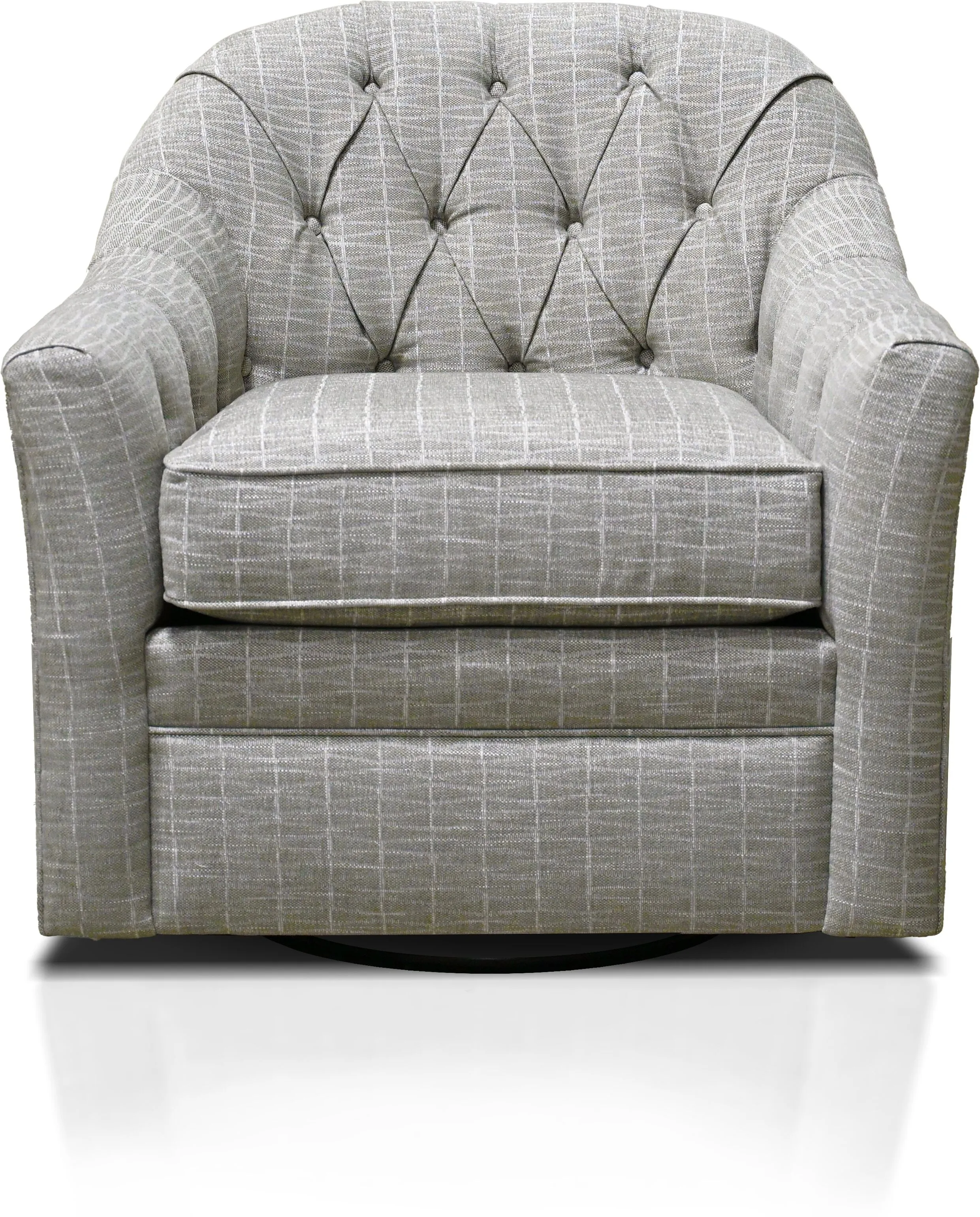 England's Adalie swivel gliding chair has an undoubtedly sophisticated flair. Its flared arm, chic tufted back, and comfortable seat make it a welcome addition to any home. Choose from 400+ fabrics to make it all your own!