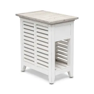 Luxury and style meet with the Islamorada Chairside Table. Crafted from solid Mindi wood, it features dovetail joint drawers with full extension ball bearing glides and beautiful water-based, eco-friendly finish. With its slightly distressed wood and finish, this piece is sure to bring warmth and sophistication to your living room. Ready to be admired!