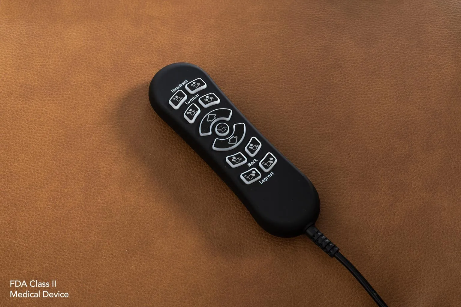 Power-tilt headrest and power adjustable lumbar; Dual motors allow the footrest and back to be controlled independently.