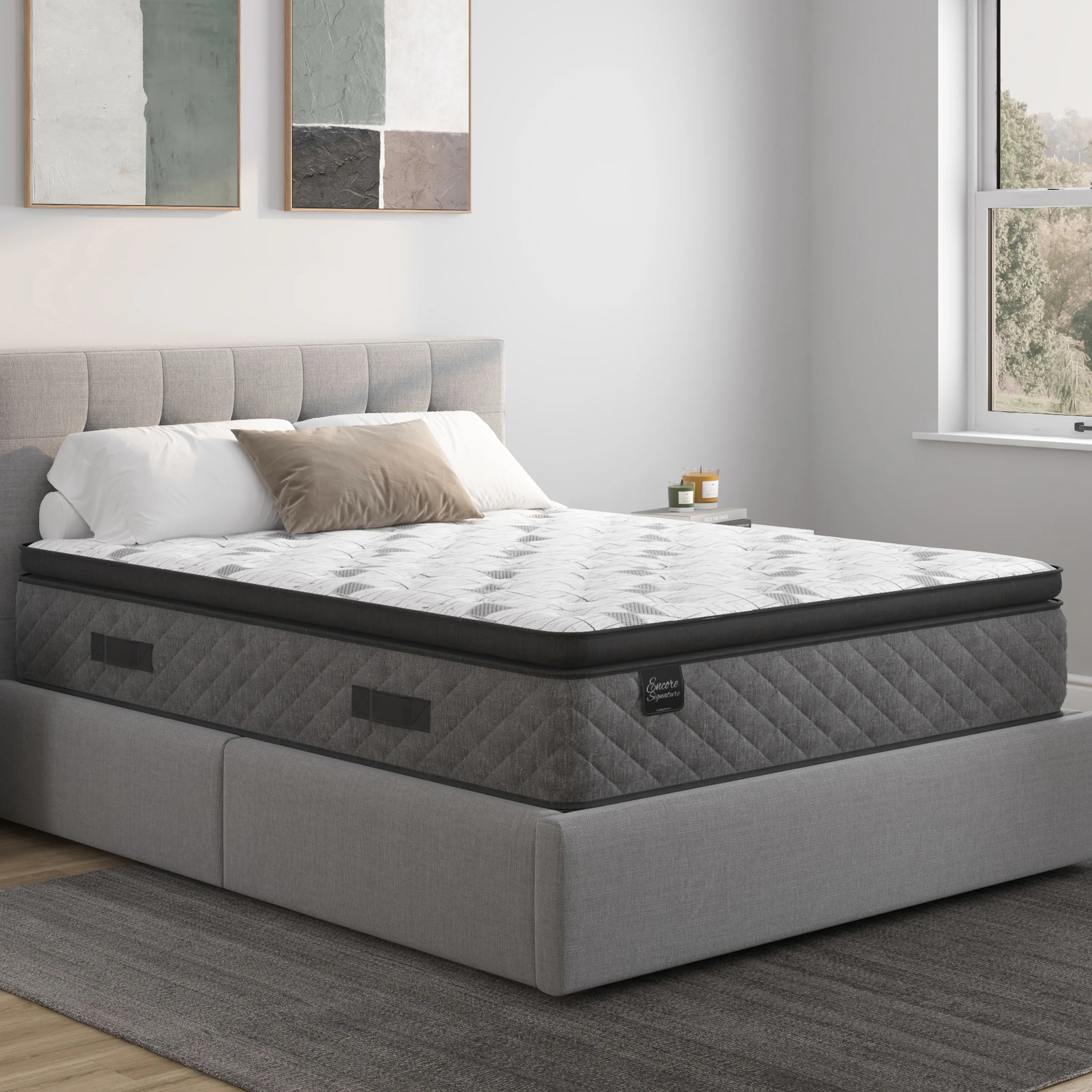 The Encore® Signature Windsor Soft Pillow Top Mattress combines ultra-soft plush layers for advanced comfort and a soft feel. An 8" fabric-encased coil system and medium-firm base provide trusted support night after night.