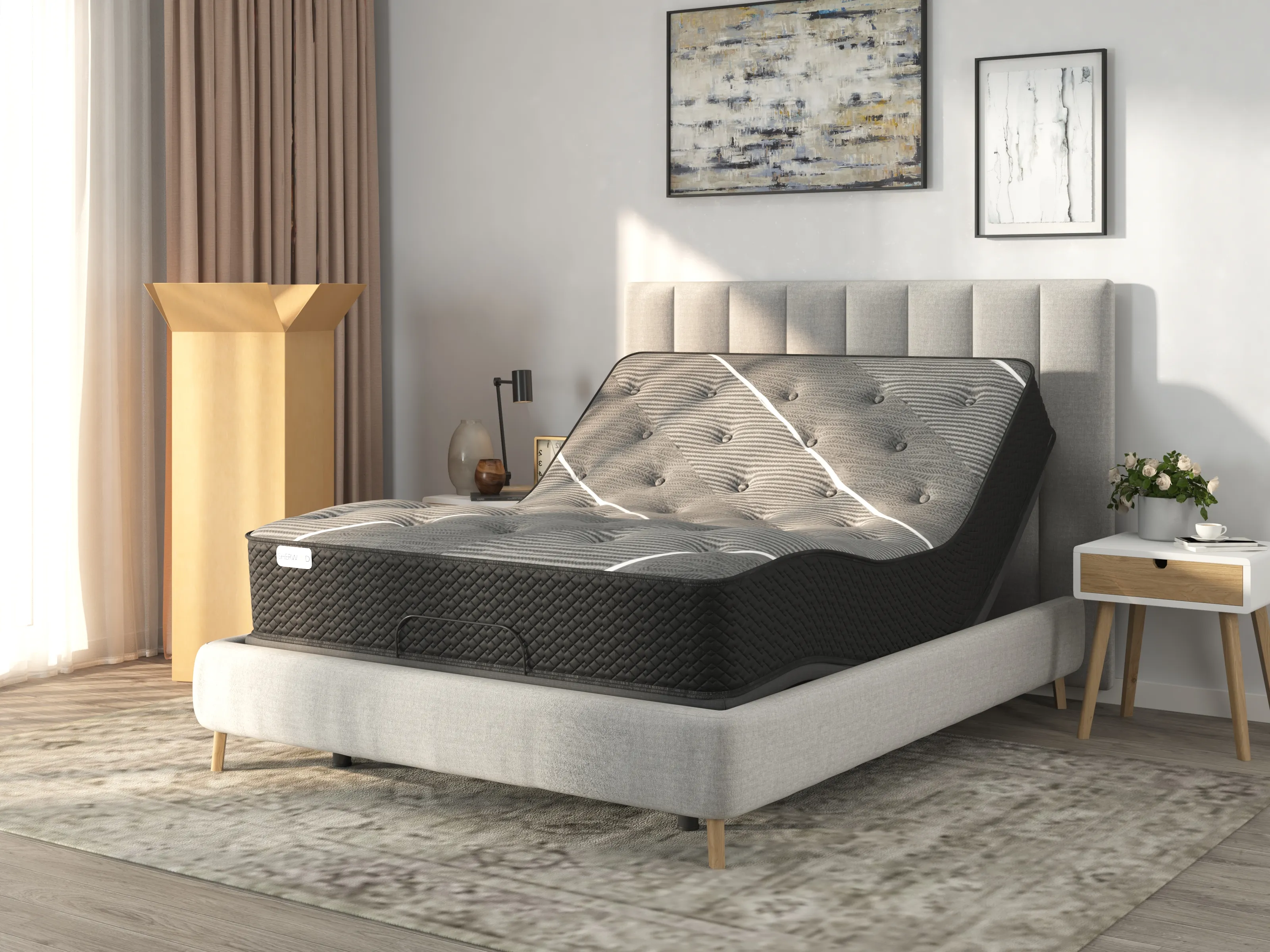 | A queen-sized bed made of two separate mattresses that allows for personalized feels and adjustability. | 60" wide x 80" long |