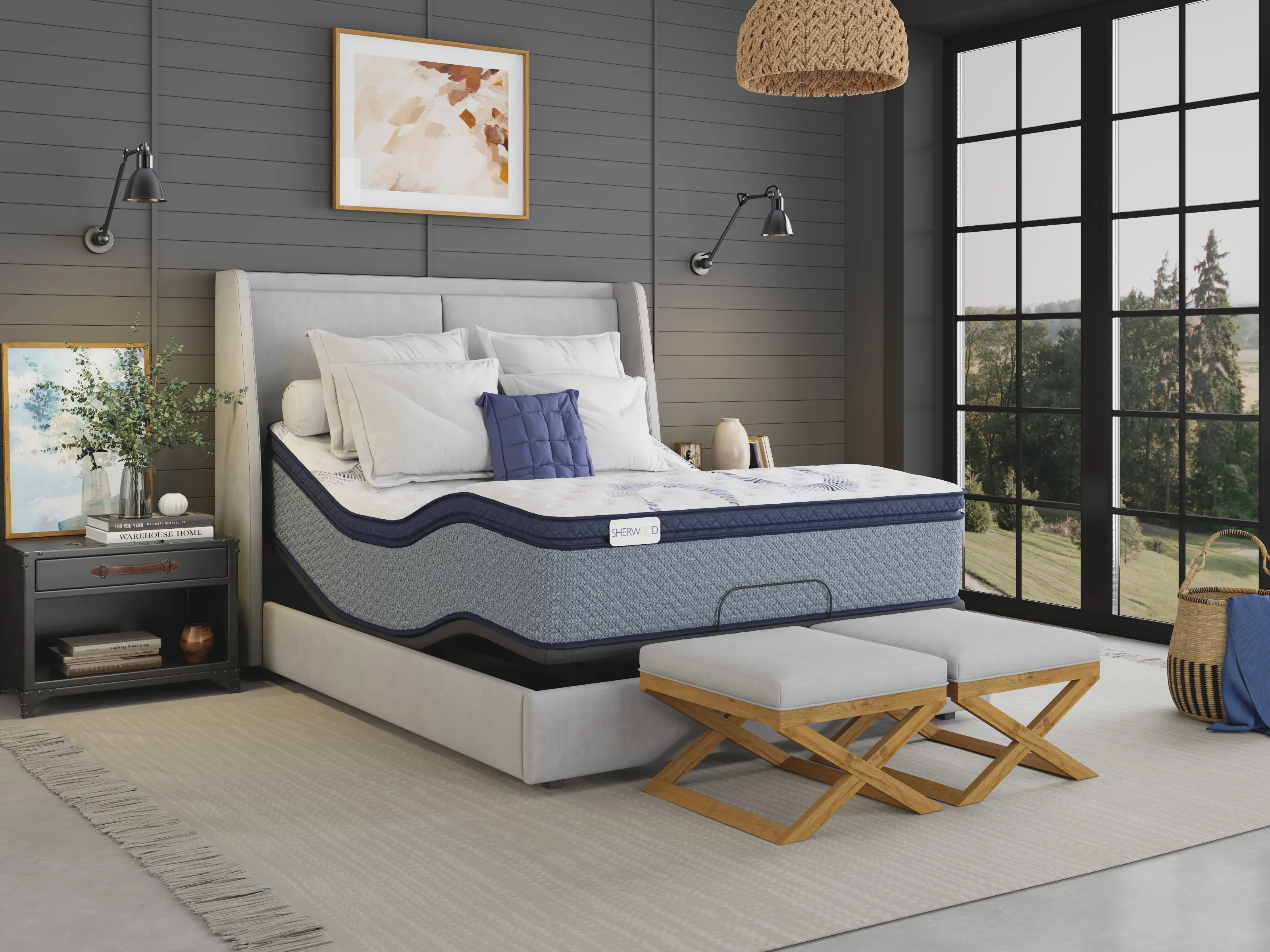 | A queen-sized bed made of two separate mattresses that allows for personalized feels and adjustability. | 60" wide x 80" long |